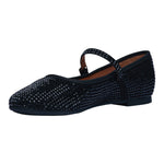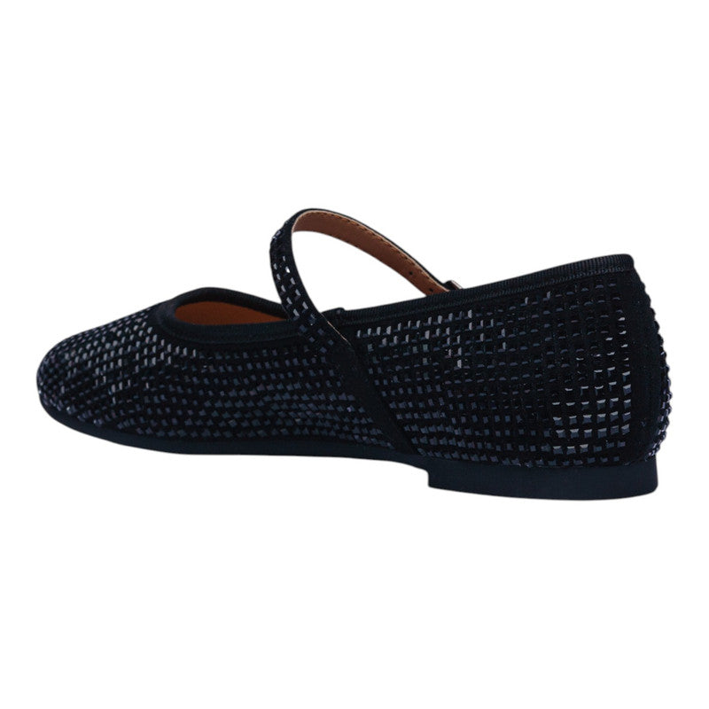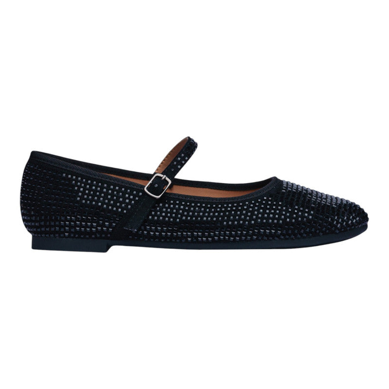 Este modelo de ballerina negra con correa al empeine es una propuesta versátil y elegante que combina comodidad y un toque sofisticado gracias a su acabado con cristales brillantes. Su diseño estilizado aporta ligereza y frescura, ideal para acompañarte tanto en un look casual como en ocasiones más formales sin perder el confort.