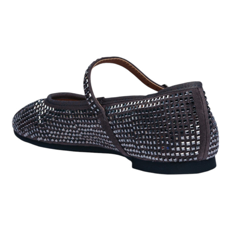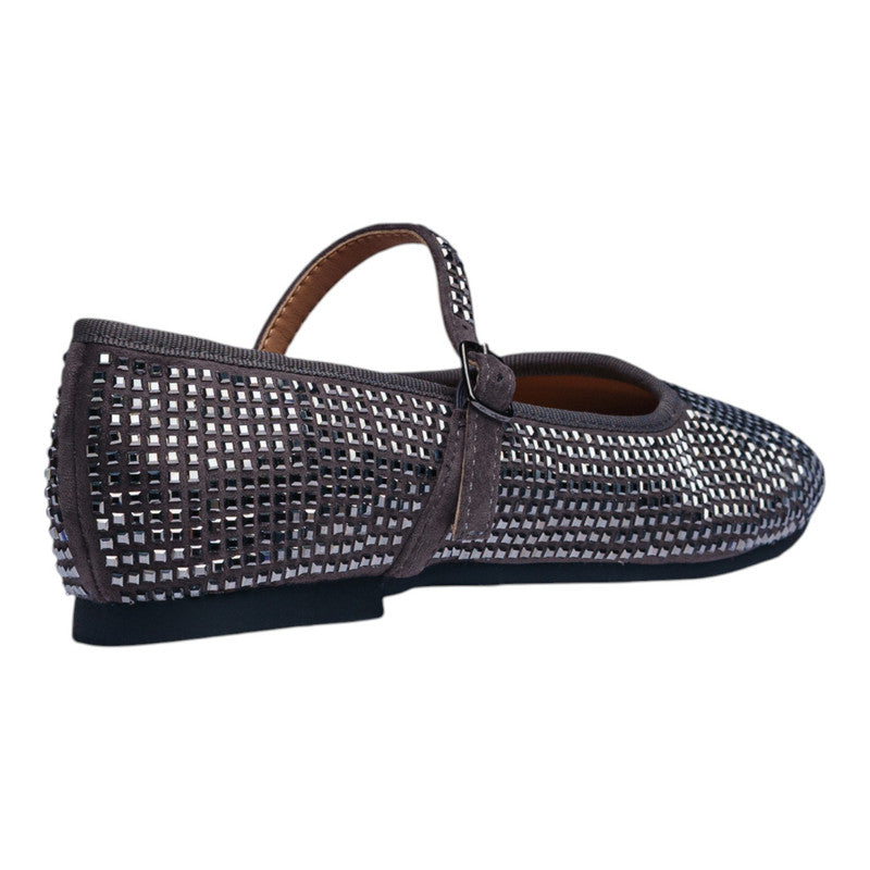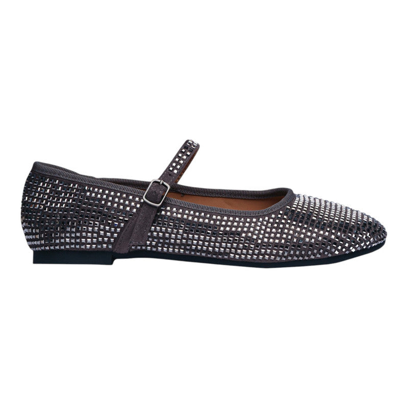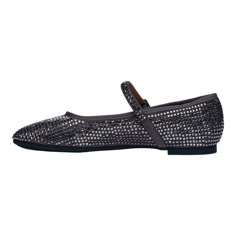 Estas ballerinas plata con acabado brillante y aplicaciones de cristales son la definición de estilo elegante y práctico. Su diseño tipo Mary Jane con correa ajustable al empeine aporta un toque sofisticado mientras asegura un calce firme y cómodo, ideal para acompañarte en tu día a día sin perder distinción.