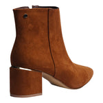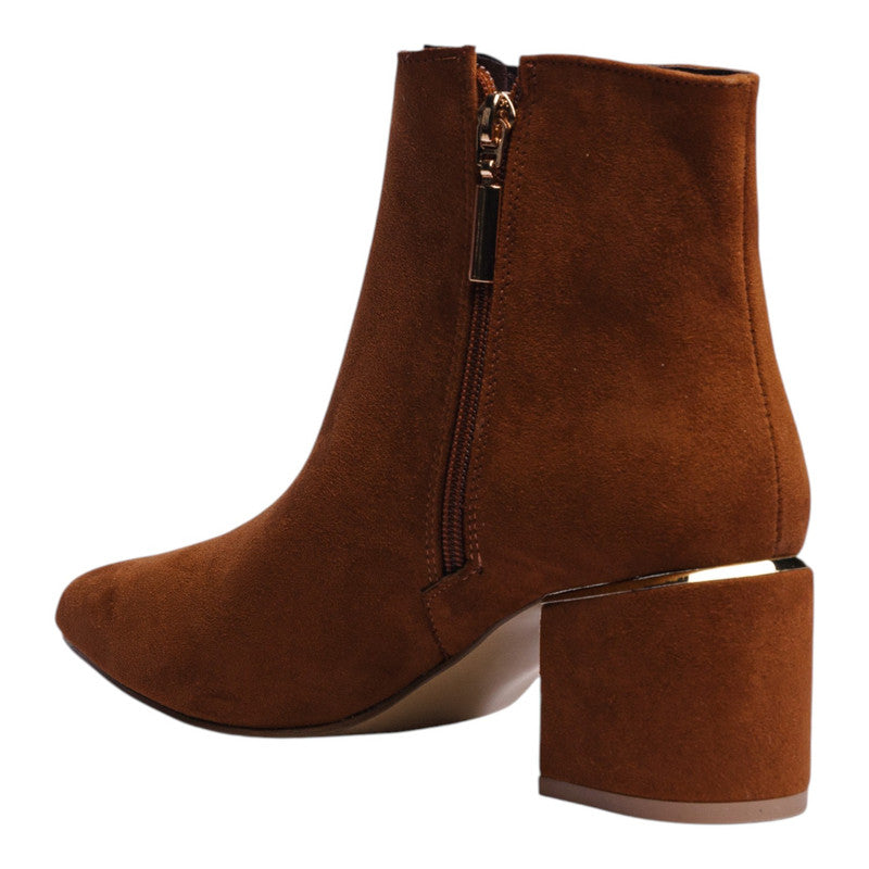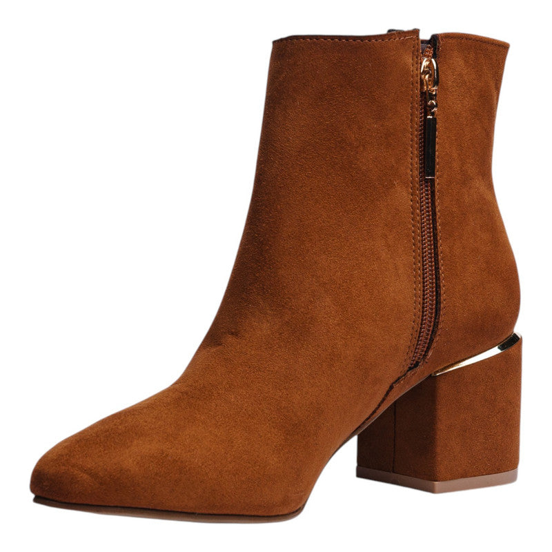 Este botín de dama en corte sintético color tan destaca por su diseño elegante y minimalista que aporta un aire moderno a cualquier look. Su punta fina estiliza el pie y su silueta limpia lo convierte en un modelo versátil para usar tanto de día como de noche.