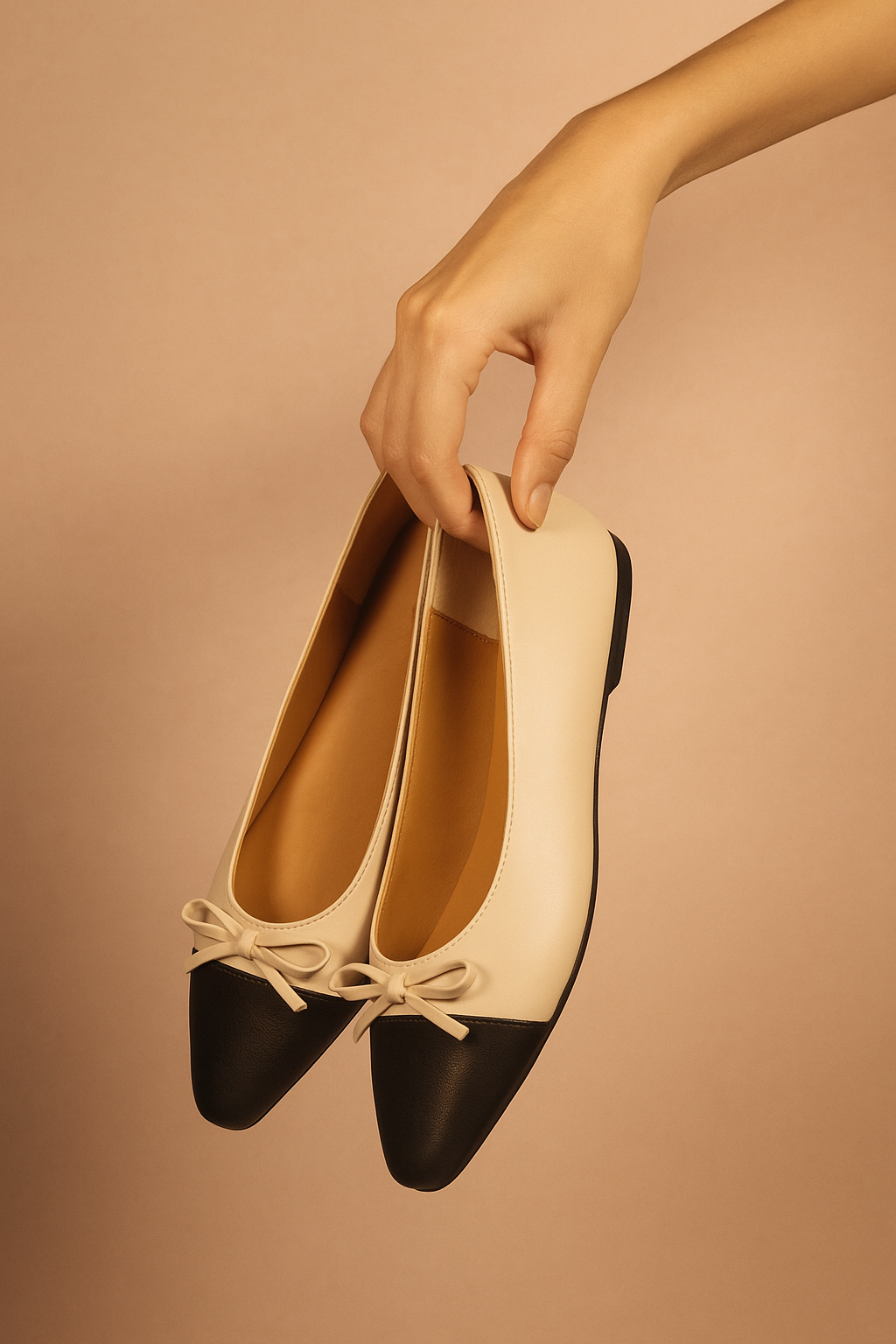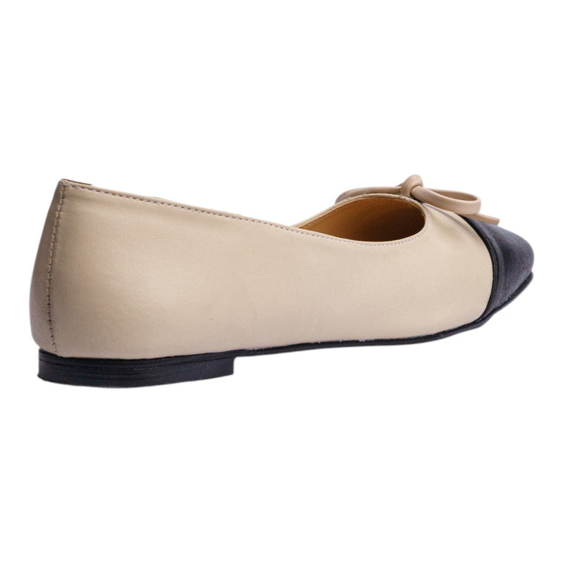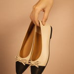 Ballerina para dama en diseño bicolor maquillaje con punta negra, un estilo clásico que nunca pasa de moda. Su silueta refinada con detalle de moño en la parte frontal aporta un toque femenino y elegante, ideal para quienes buscan comodidad sin renunciar al estilo.
