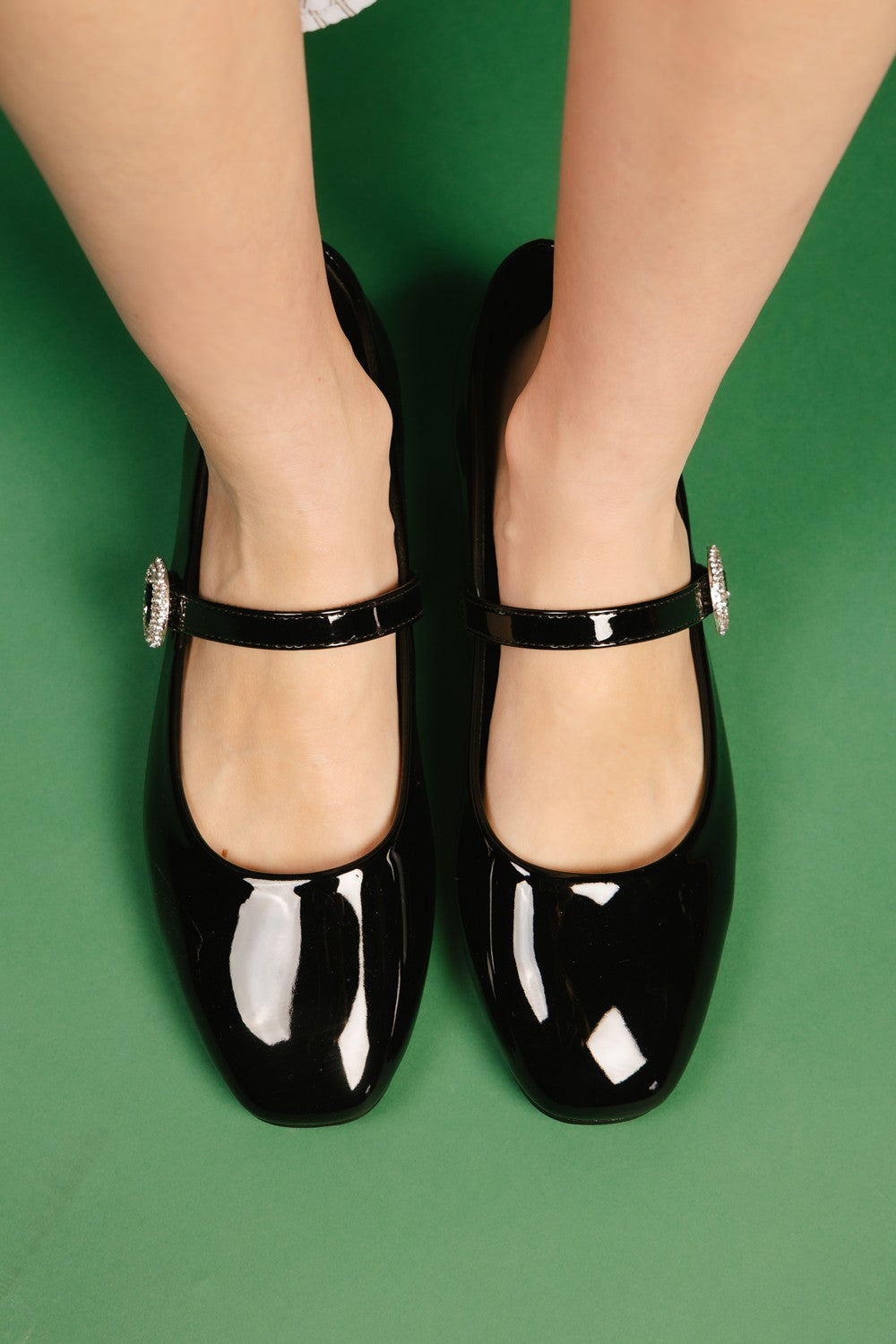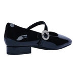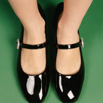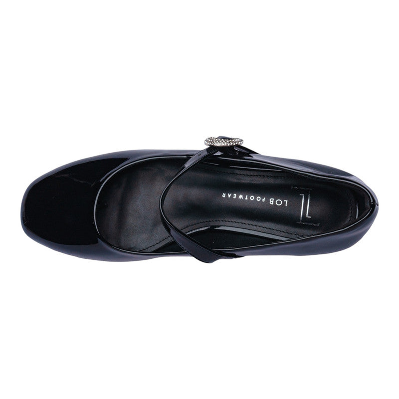 Esta ballerina estilo Mary Jane en color negro con acabado charol es la combinación perfecta de elegancia clásica y comodidad moderna. Su diseño resalta por la delicada tira con hebilla decorada con pedrería brillante, que aporta un toque sofisticado y femenino sin perder practicidad.