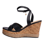 SANDALIA CUÑA NEGRA PARA MUJER DE PIEL SINTETICA LOB FOOTWEAR 86805062 - 23 / Negro / 86805062