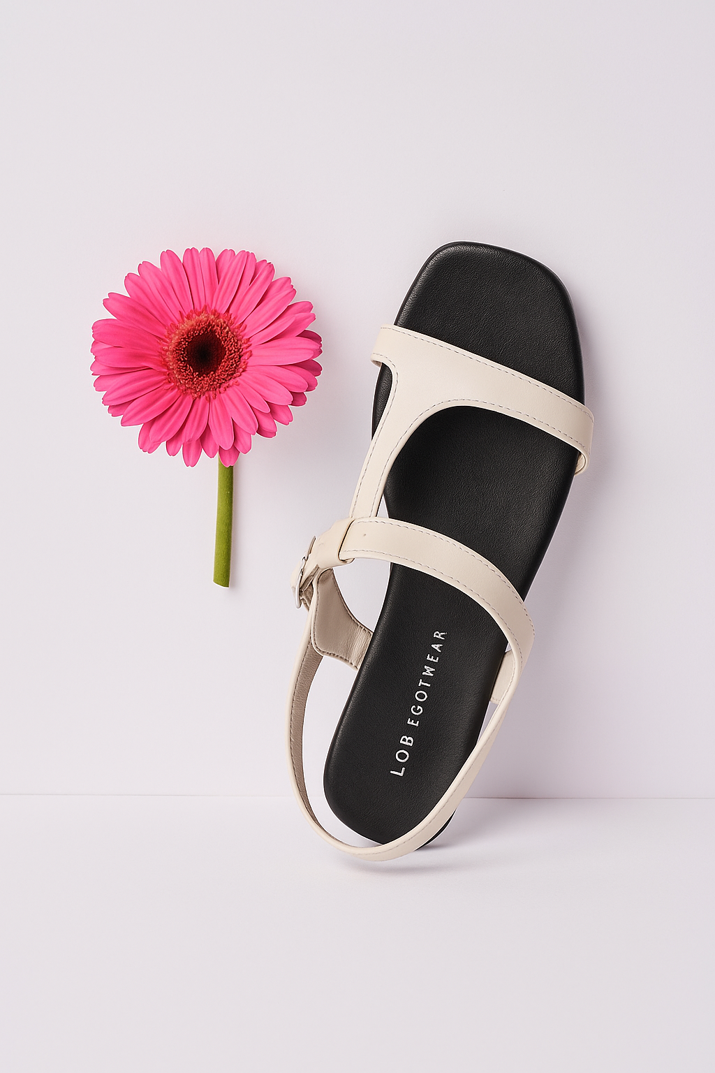 La suela ligera y flexible garantiza confort durante todo el día, mientras que su diseño versátil la convierte en la aliada perfecta tanto para looks casuales como para combinaciones más estilizadas. El contraste de la plantilla oscura con las tiras claras añade un toque contemporáneo que eleva el diseño.