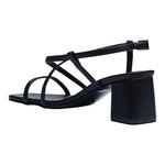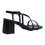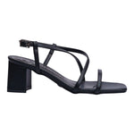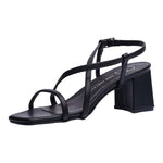 Sandalia de tacón para dama en color negro, un clásico atemporal que combina elegancia y practicidad. Su diseño con tiras delgadas entrecruzadas aporta un estilo moderno y femenino, mientras que la pulsera ajustable asegura un ajuste cómodo y seguro en cada paso.