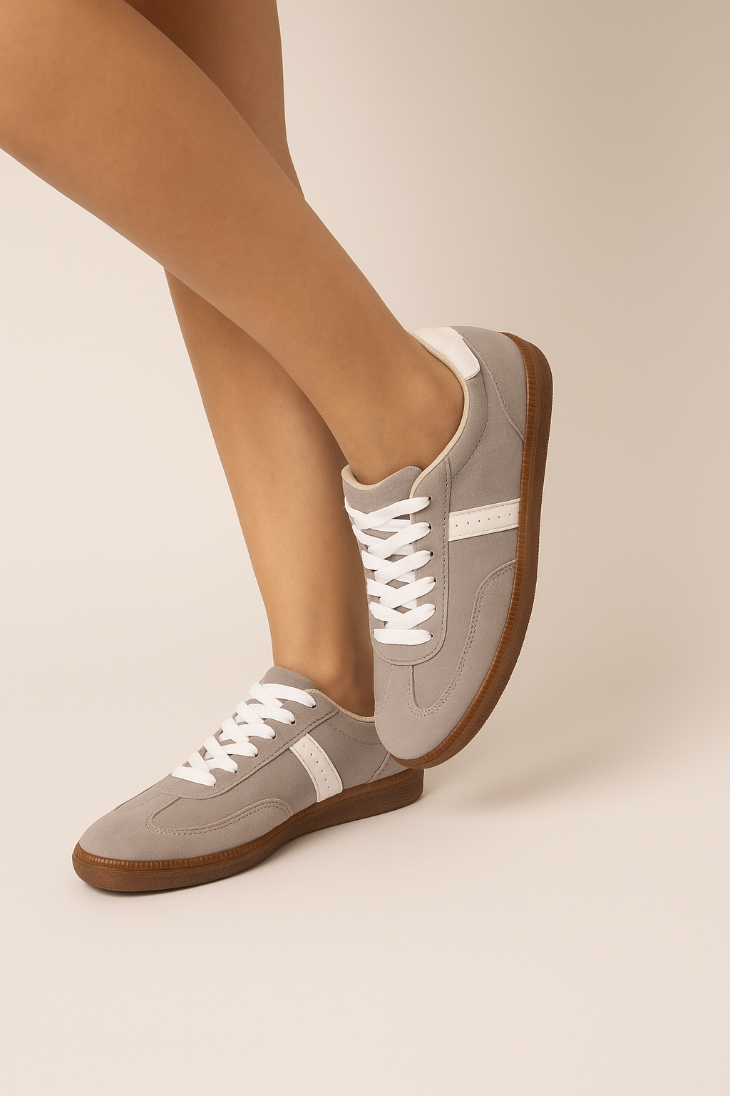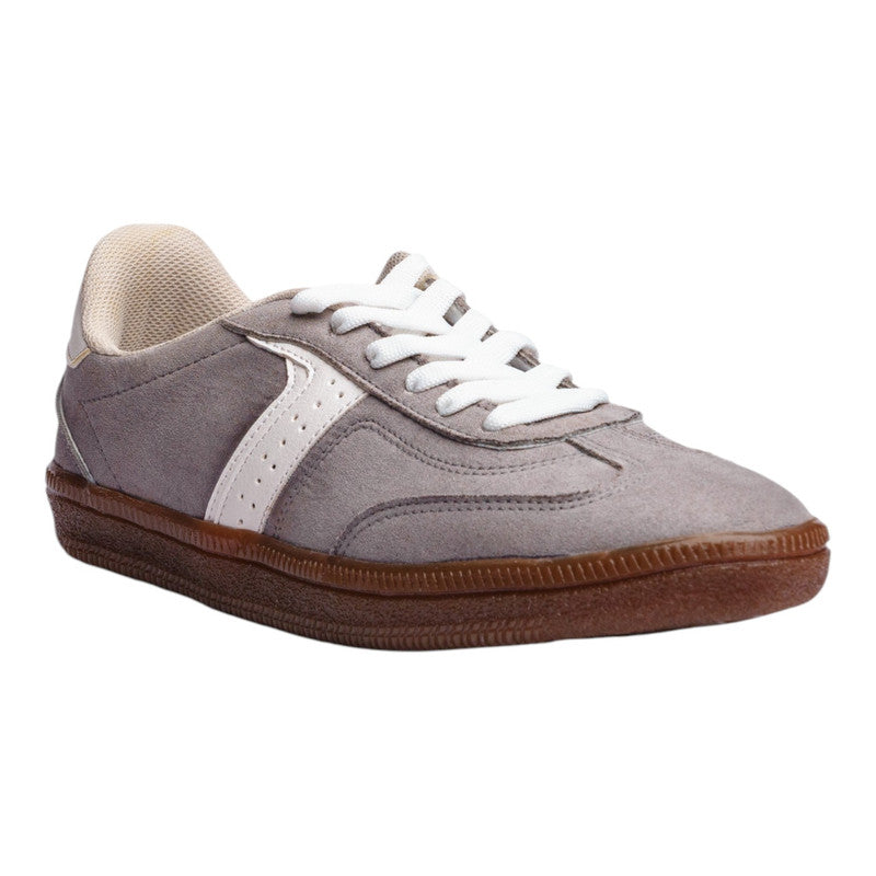 Tenis para dama en color gris con detalles blancos, un diseño moderno y versátil que combina estilo urbano con comodidad. Su silueta clásica con agujetas y suela en tono goma lo convierten en un calzado fresco y funcional, ideal para quienes buscan un look casual con un aire contemporáneo.