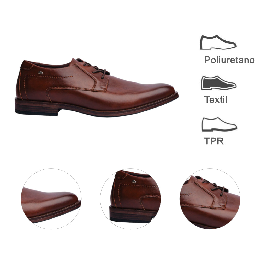 Zapato de vestir para caballero en color tan, confeccionado en poliuretano de alta calidad con un diseño clásico y elegante. Su silueta refinada con agujetas aporta un estilo atemporal, ideal para quienes buscan proyectar sofisticación en cada ocasión.