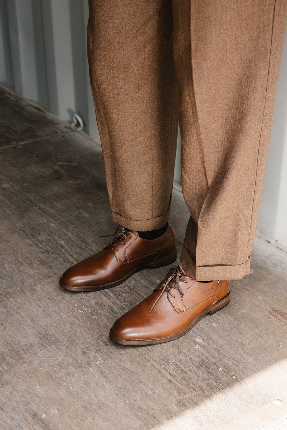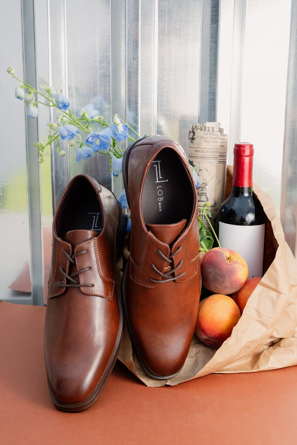 Zapato de vestir para caballero en color tan, confeccionado en poliuretano de alta calidad con un diseño clásico y elegante. Su silueta refinada con agujetas aporta un estilo atemporal, ideal para quienes buscan proyectar sofisticación en cada ocasión.