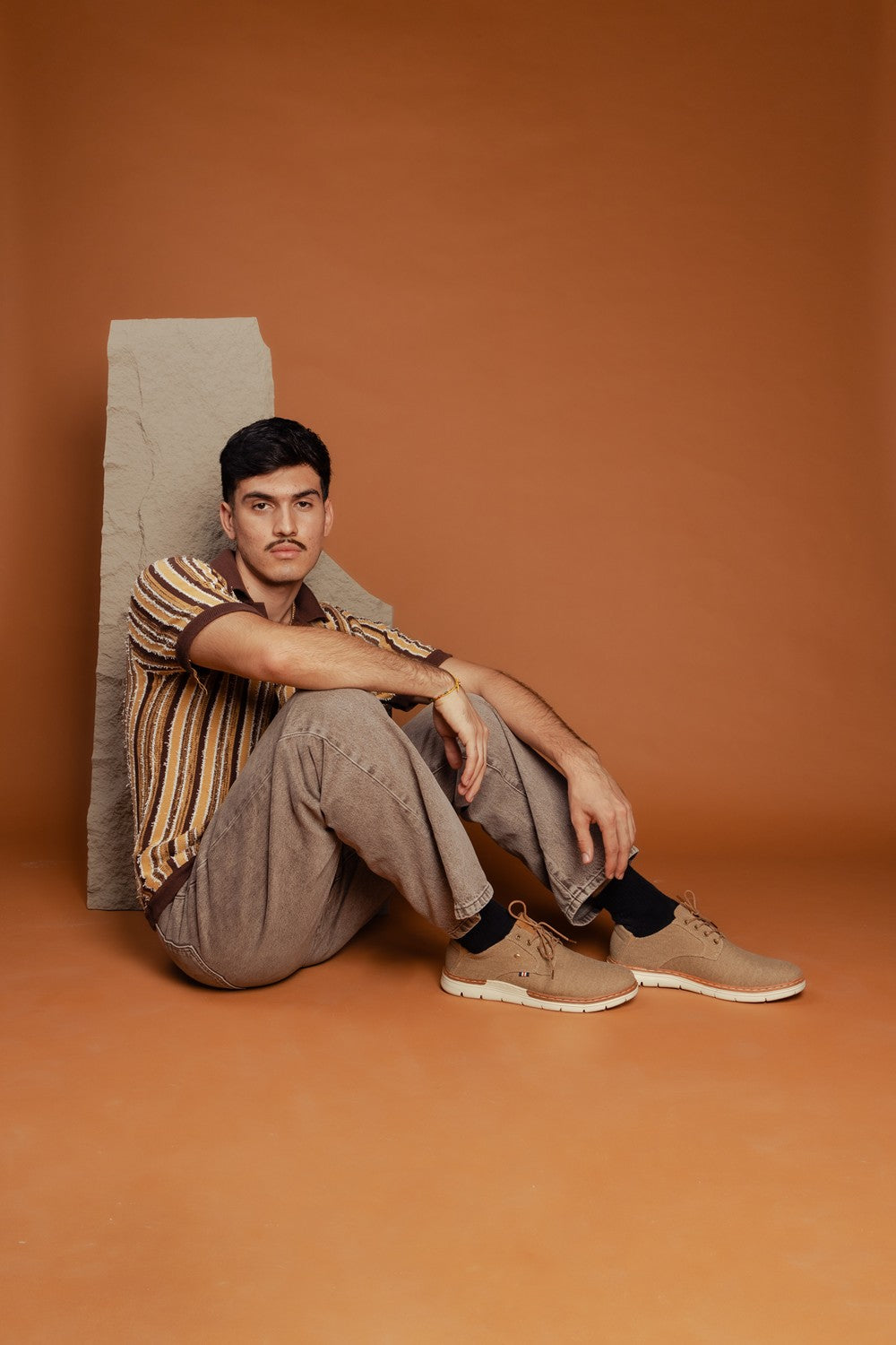 Calzado de vestir casual para caballero en color taupe, elaborado en textil de alta calidad con un diseño moderno y funcional. Su estilo fresco y ligero lo convierte en un calzado ideal para quienes buscan proyectar elegancia en el día a día sin perder comodidad.