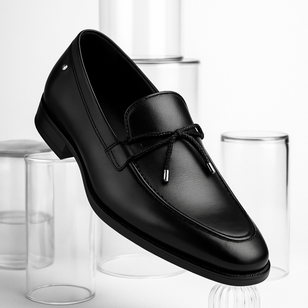 Mocasín de vestir con lazo decorativo y acabado brillante, ideal para lograr un look elegante y pulido sin sacrificar comodidad ni estilo.