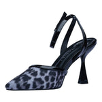 Este pump slingback con diseño animal print en tonos negros es la combinación perfecta entre estilo audaz y sofisticación. Su punta fina estiliza la silueta, mientras que el tacón de 8.2 cm con acabado elegante aporta altura y confianza en cada paso.