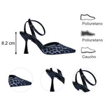 El detalle de la pulsera ajustable al tobillo no solo brinda soporte y seguridad, sino que también añade un toque femenino y refinado al diseño. Su mezcla de texturas entre el estampado y el acabado brillante en el ribete genera un contraste moderno y versátil, ideal para elevar cualquier look.